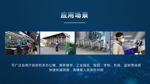 可廣泛應用于政府機關辦公樓、商務寫字樓、工業(yè)園區(qū)、醫(yī)院、學校、機場、監(jiān)獄等場景,快速體溫篩查,高精度人員身份識別。